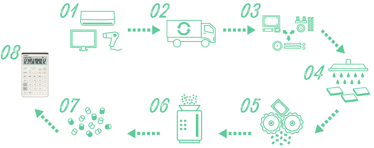 卡西欧正积极推进在计算器主体中使用PCR塑料(消费后回收塑料)。