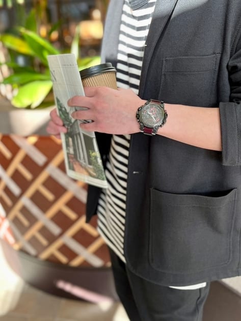 这是一款配备了蓝牙连接、太阳能动力的多指针计时腕表,厚度仅为12.1毫米,实现了小巧、轻薄的设计。金属零部件的独特存在感和醒目的红色点缀使其成为一款在商务场合中表现卓越的优雅G-SHOCK!