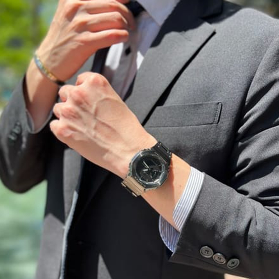 彩虹色的表盘点缀银色金属质感,能够很好地融入西装风格!表壳设计简单又不失奢华,展现出高品质感!