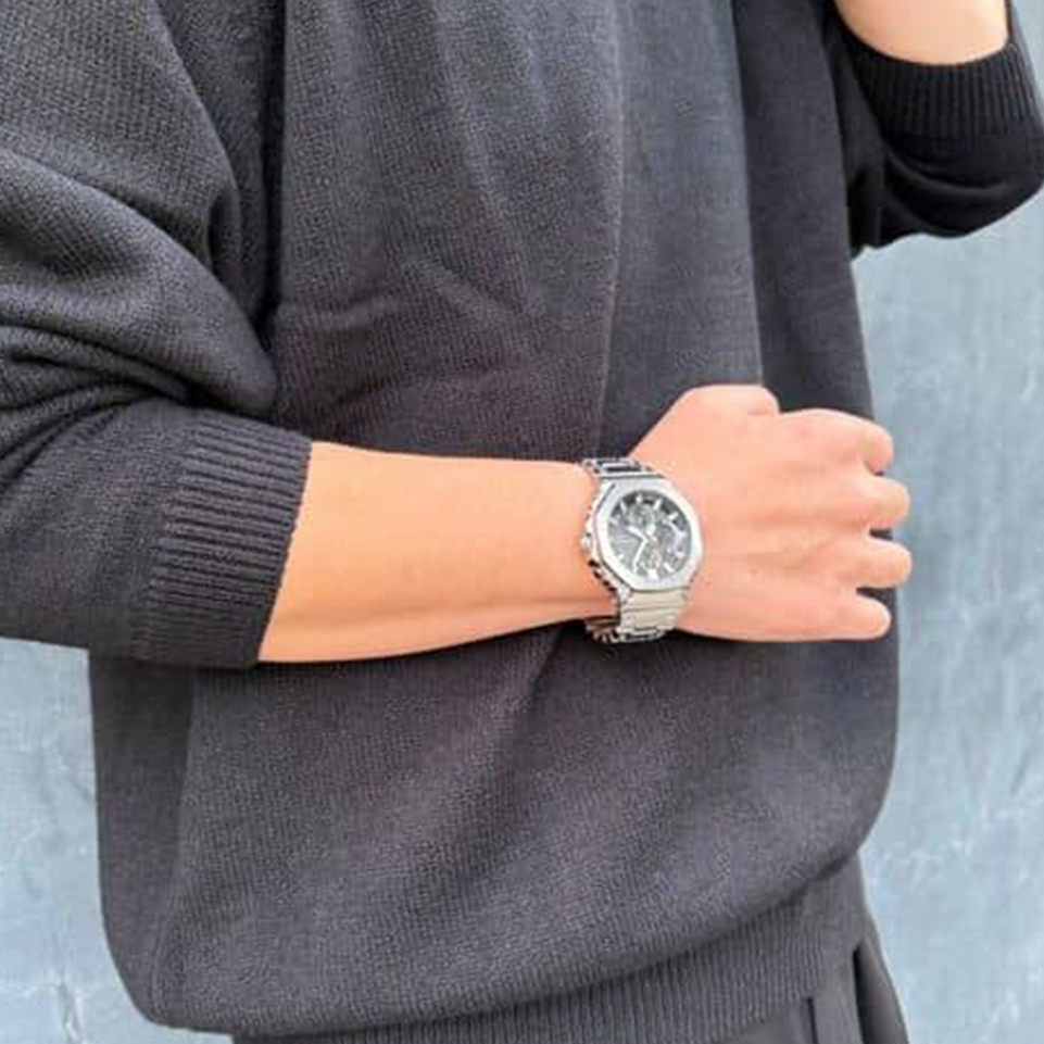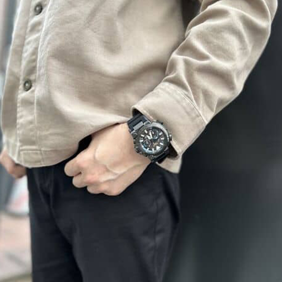 这是在 5600 系列中采用了尼龙表带的款式哦。实际上虽说叫尼龙,但使用的是一种名为 CORDURA(考杜拉)的强度非常出色的丝线,其出色的抗冲击、抗磨性能就是这款产品的魅力所在!因为它是一种耐用程度足以被应用在户外产品以及军用背包等上的材料,所以不仅适合户外佩戴,日常佩戴也非常合适!黑色的配色,便于搭配各种时尚风格,所以很推荐哦!