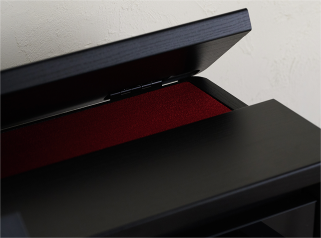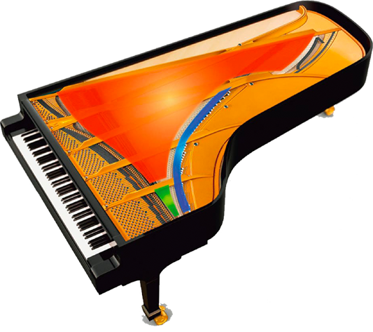 三角钢琴顶部有一个大的盖子,称为“顶盖”,结构可开合。由于它是从高音域一侧打开的,因此打开并演奏可以改变音乐的明亮度和扩散方式,通过击键可以更清晰地感受声音的变化。AP-750和AP-550,AP-300配备「琴盖模拟器」功能,可以在四个阶段再现顶盖开合程度对音色的不同影响,这使得您可以根据曲目演奏出更加丰富且广阔的声音。