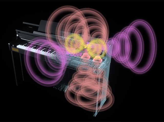对于电子乐器而言,音响系统是非常重要的组成部分。出色的音源、音色以及通过键盘触感呈现的演奏效果,最终都需要通过音响系统输出为我们耳朵所听到,这个系统在很大程度上影响着乐器整体的表现力。CELVIANO AP系列的音响系统致力于追求三角钢琴身临其境般的自然声音效果。这套独特的音响系统旨在最大化AP系列的表现力,使细腻的表达和动态的广度能够以富有现场感的方式为听众感知。