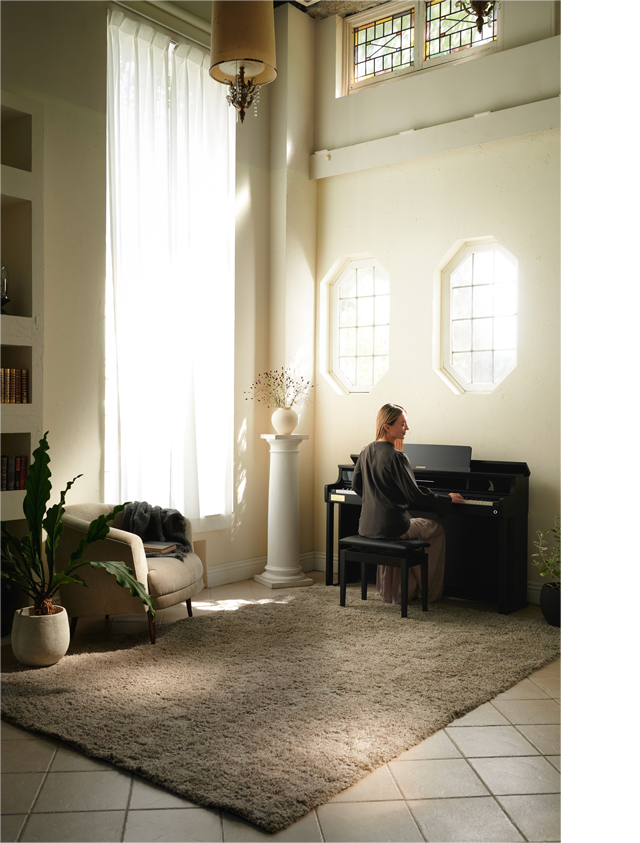 CELVIANO AP系列配备“音效模式”功能,可以在音响系统输出的声音上添加各种效果,使钢琴演奏体验更加个性化。通过添加混响音效,可以获得在房间或音乐厅空间中的混响效果,环绕声可以让声音输出扩散更加广泛。此外,还搭载“音乐厅模拟”,可以模拟世界著名音乐厅音响特性的音色,比如清澈端正的声音、延绵悠扬且华丽的声音等,享受充满现场感的音效效果。通过选择自己喜欢的音响设置类型,即可深入地感受沉浸式的演奏体验。