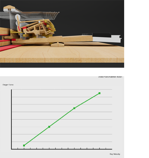 搭载“离键模拟器”功能,可以根据演奏者手指离开键盘的速度,改变离键之后音符消失的时间(释放时间)、表情力。根据演奏者松开键盘的速度,改变音符的余韵和表达,能够表达演奏者手指传达的细腻感性,追求三角钢琴般独有的细微差异。