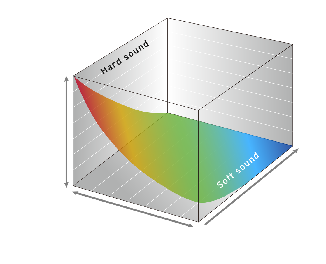 在家中弹奏或夜间练习时,需要降低音量,因此“音量同步均衡器”非常实用。由于人类听觉的特性,当演奏中将乐器的音量调低时,低音和高音可能会变得难以听清,但通过音量同步均衡器,可以在演奏时自动补正低音和高音,使其保持平衡。即使是较小的音量,也能够保持动态平衡,更容易听清,因此无论音量大小,都可以在不同的音域中以平衡的音色进行演奏。