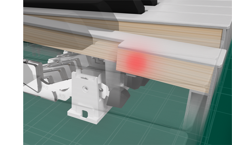 选择电钢琴时,最重要的评估因素之一就是“触感”。触感是指敲击琴键发出声音获得的相关触键反馈。锤击动作是指用与三角钢琴的琴槌同重量的物体发出敲击感的机制,这种效果广泛应用于许多电钢琴中。但是,电钢琴和原声三角钢琴发音的核心机制不同,因此触感和音质之间的关系也不同。也就是说,只有同时采用数码控制技术和物理结构,才能准确再现原声钢琴的触感。