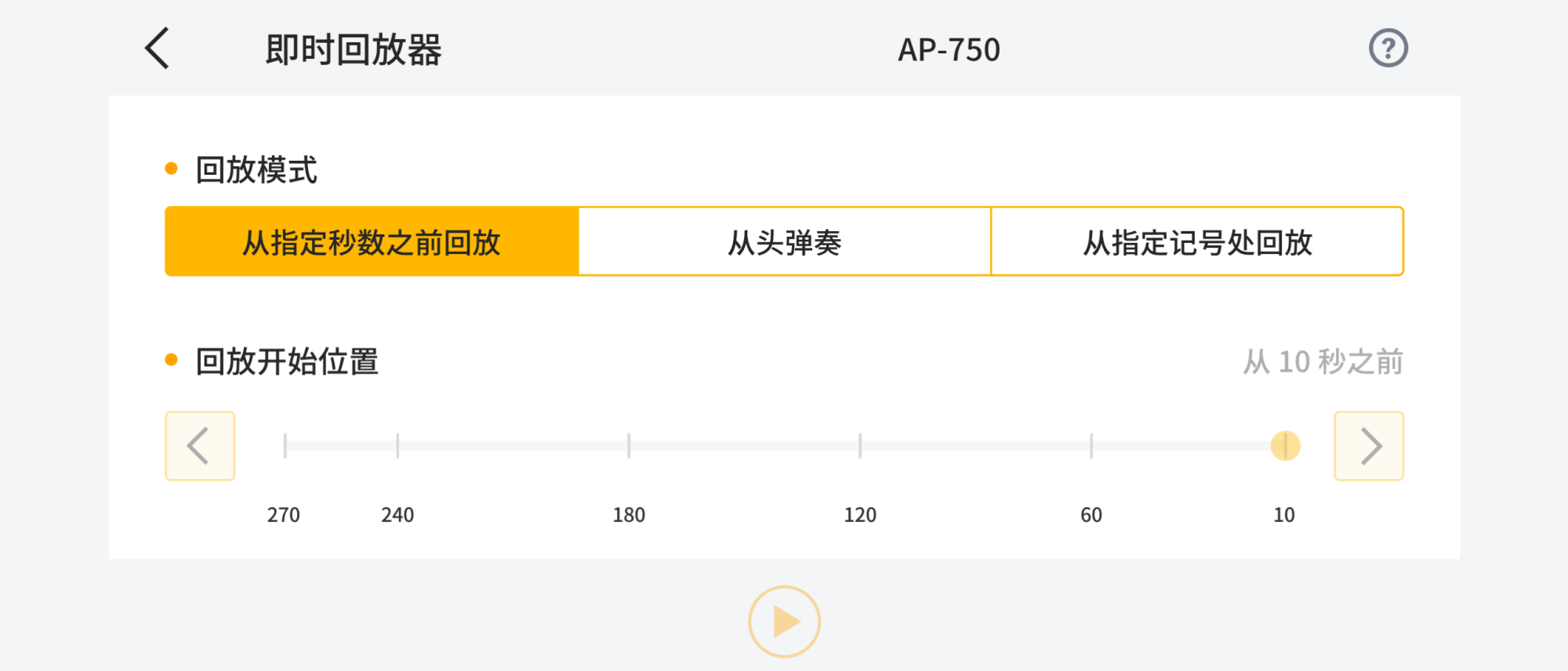 打开“即时回放器”模式后,只需击键或使用踏板即可开始持续录音,可保存最长270秒的演奏数据。当超过270秒时,较早的数据将被覆盖,因此无需刻意去进行录音。在自由演奏或练习的过程中,如果出现任何感兴趣的部分,可以轻松选择想要播放的位置并立即回放聆听。一般的录音功能需要从录制曲目的开头开始播放,但在“即时回放器”中,您能够以5秒为间隔指定播放位置,如果你想要复习某个不太顺利的乐句,可以点击播放立即进行回放。此外,在演奏过程中,您还可以标记稍后想要回放的部分,可以指定播放的位置,这对于精确定位您觉得特别困难的部分,或者复习比较薄弱的段落是非常有帮助的。具体的操作可以在琴本体上进行操作,也可以通过专用应用程序“CASIO MUSIC SPACE”轻松设置。