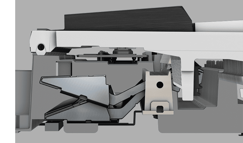 虽然三角钢琴有88个琴键,但由于琴槌的大小和重量、琴弦的粗细和数量等的差异,每个琴键都会产生不同的触感。在“智能混合重锤击弦键盘 CELVIANO定制版”中,为了精确还原三角钢琴的触感,键盘设计利用“88键数码小型化设计”,对每个琴键的触摸响应进行调整。此外,通过“琴槌响应”,数码精细控制从按键到发音的时间,以及在每个琴键盘表达不同音域微妙的触感变化,使您能够在演奏时感觉自己就像演奏三角钢琴一般。