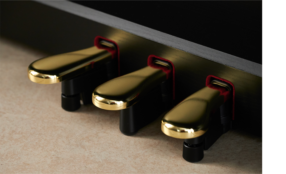 AP-750、AP-550、AP-S450的3款型号的延音踏板都是连续可变式的,不仅可以延长音符的持续时间,还能忠实地再现因制音器打开而引起的共鸣变化。根据踩踏力度的不同,不仅可以控制节奏和和声,还能微妙控制音色,通过踏板操作表现出细微的差别。柔音踏板也能够自然地表现出由于琴槌单元横向偏移而引起的三角钢琴音色的变化。AP-300、AP-S200的延音踏板支持半踏板效果。也可通过踏板调节拓宽演奏效果。AP-750采用连续可变式,而AP-550则支持半踏板效果,这样在弱音演奏时,通过踏板操作可以添加微妙的细节。AP-750和AP-550、AP-300的踏板单元在硬件方面也得到了加强。踏板的长度和间距以三角钢琴的踏板为基础,这样在踩下踏板时可以踩得更深,让连续可变式的细致操作更加轻松。此外,通过加强机械部件和在底部安装调整器,即使在重踏时也能实现稳定且精细的控制。AP-S450、AP-S200 采用兼具轻薄和操作舒适的三踏板组件。AP-S450搭载连续可变式的延音踏板,AP-S200的延音踏板支持半踏板效果,可通过踏板实现更细腻的演奏表现。