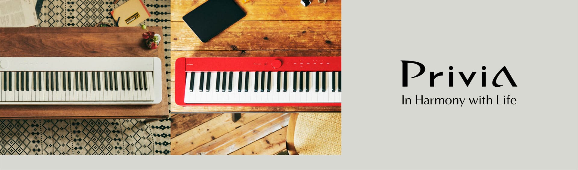 Privia系列电钢琴真实还原三角钢琴的高品质音色和演奏体验。还原三角钢琴的键盘触感使其从低音到高音的全音域表现力更加丰富,令演奏者达到忘我的演奏境界。轻薄琴身以卡西欧技术为内核支撑,展现出色的乐器演奏效果。