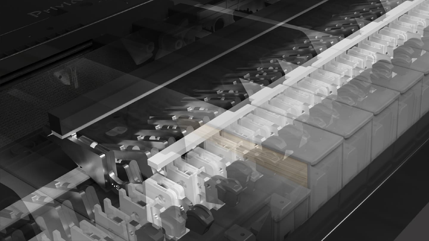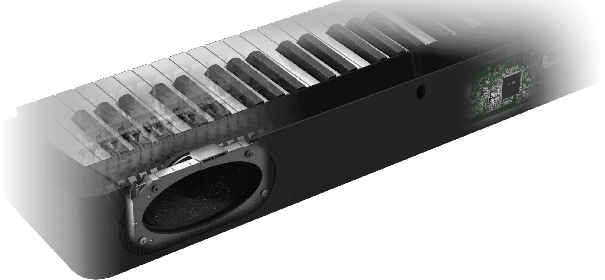 卡西欧开发了一种独特而紧凑的击弦机动作结构,优化琴槌重量、重心位置和惯性动量,在轻弹时的轻柔响应与重弹时的动态反馈之间实现平衡。