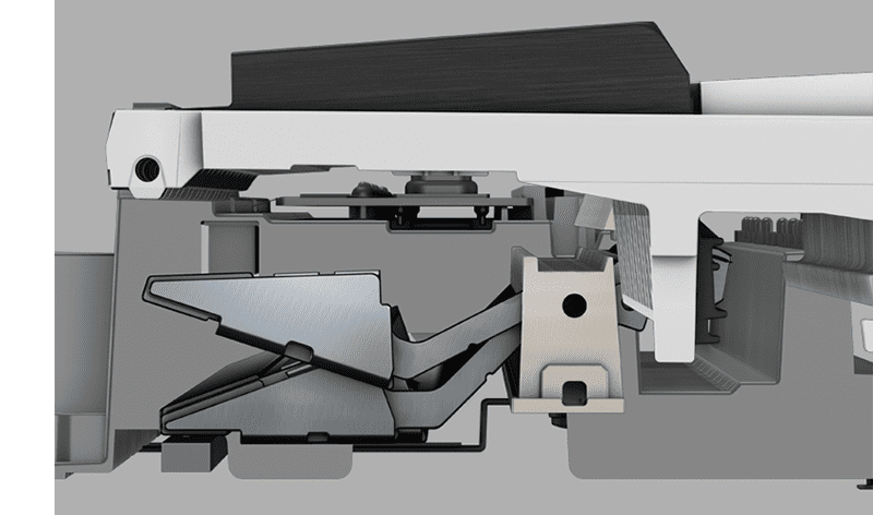 卡西欧开发了一种独特而紧凑的击弦动作结构,优化琴槌重量、重心位置和惯性动量,在轻弹时的轻柔响应与重弹时的动态反馈之间实现平衡。