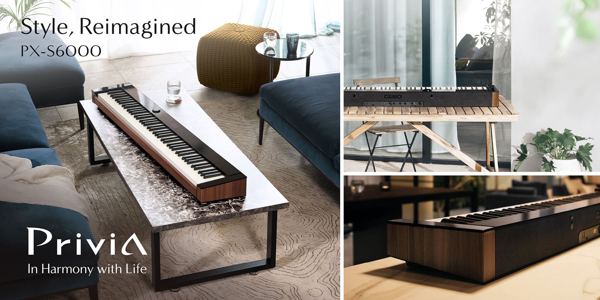 PX-S7000/PX-S6000的设计现代、简约且和谐,不仅可以作为上佳的乐器演奏,还能作为时尚家居搭配、融入各种生活装饰空间。PX-S7000型号有三种颜色供您挑选,PX-S7000/PX-S6000都兼顾了品质与时尚风格,与您的生活辉映成趣。快用PX-S7000/PX-S6000来装扮、升级您的生活空间吧。