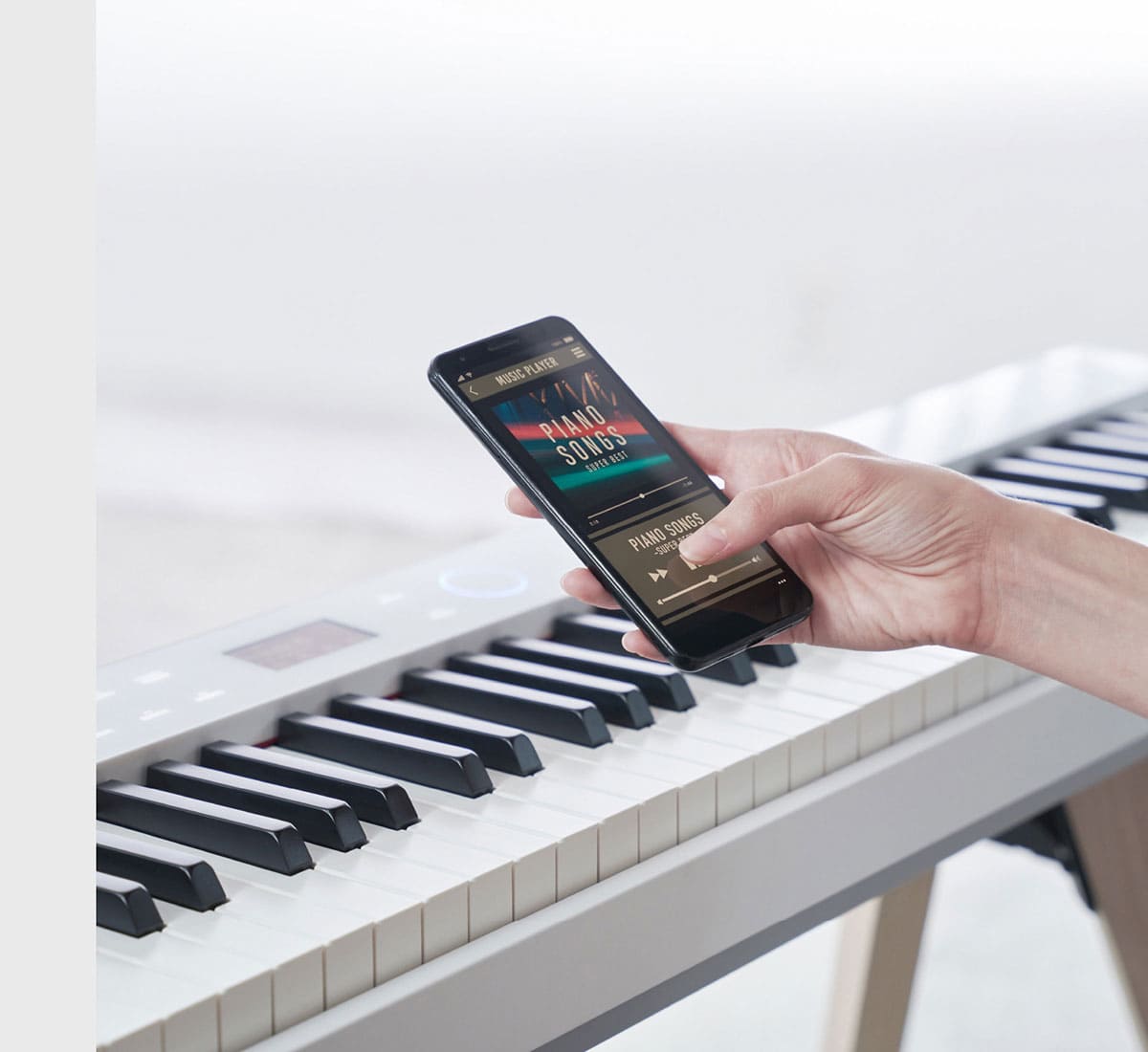 将免费应用APP“CASIO MUSIC SPACE”安装到您的智能手机或平板电脑上,解锁更多丰富功能。将您的智能设备变成钢琴遥控器,单手即可调整音色、触摸响应、共振、节拍器以及更多参数的设置。该应用APP还能同时确认和调整多个功能参数,因此您可以轻松定制专属的弹奏体验。