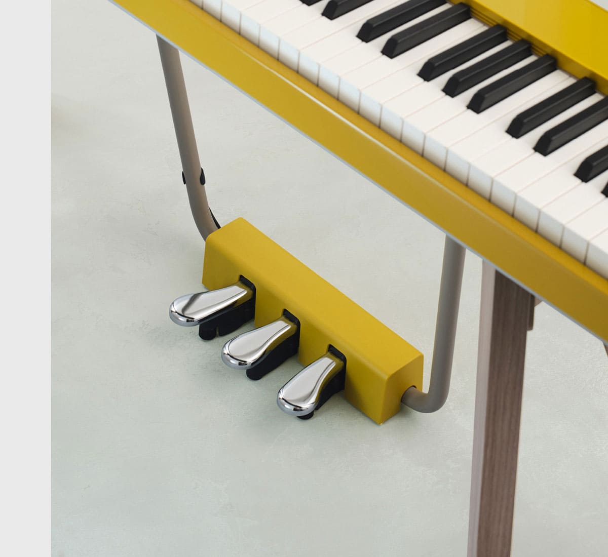 以音乐会三角钢琴设计为原型,PX-S7000自带三踏板经过了大幅升级。踏板的间隔更长更大,配重经过优化,行程更广,使弹奏的稳定性和舒适度表现更佳。踏板上还安装了两个调节器和加强版踏板铰链,支持更加精密控制和调节。