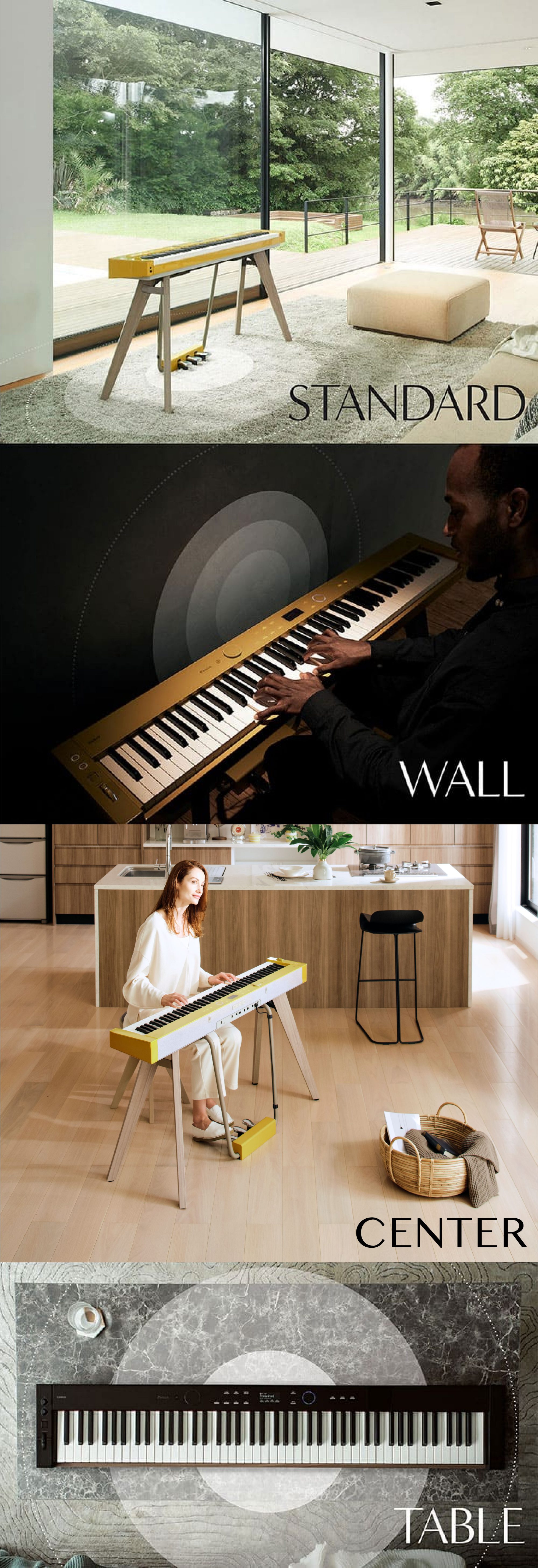我们运用极简设计理念,利用卡西欧开发技术,使电钢产品可以自然融入周围环境,旨在使您无论在哪里弹奏,都能畅享自由演奏的使用体验!