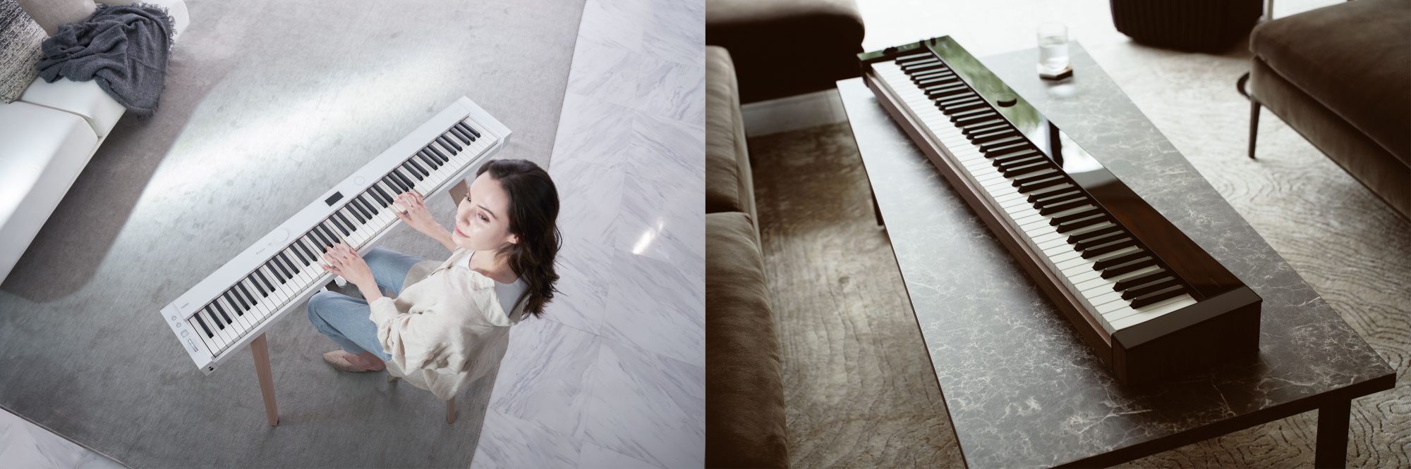 PX-S7000/PX-S6000凭借前沿技术,旨在重新定义与钢琴乐器的互动概念——融合于日常生活。通过先进时尚的设计,结合音质表现和键盘触感,使钢琴可以更好地融入到生活环境当中。无拘无束的自由选择与弹奏体验助您打破常规桎梏,探索与乐器和谐相处的全新方式。极简设计与周围环境相呼应,通过卡西欧原创技术和多年乐器制造匠心经验,提供高品质的音质、触感以及弹奏体验,重新构筑音乐表达的新局面。体验无限可能,感受高品质、新风格的华彩乐章。