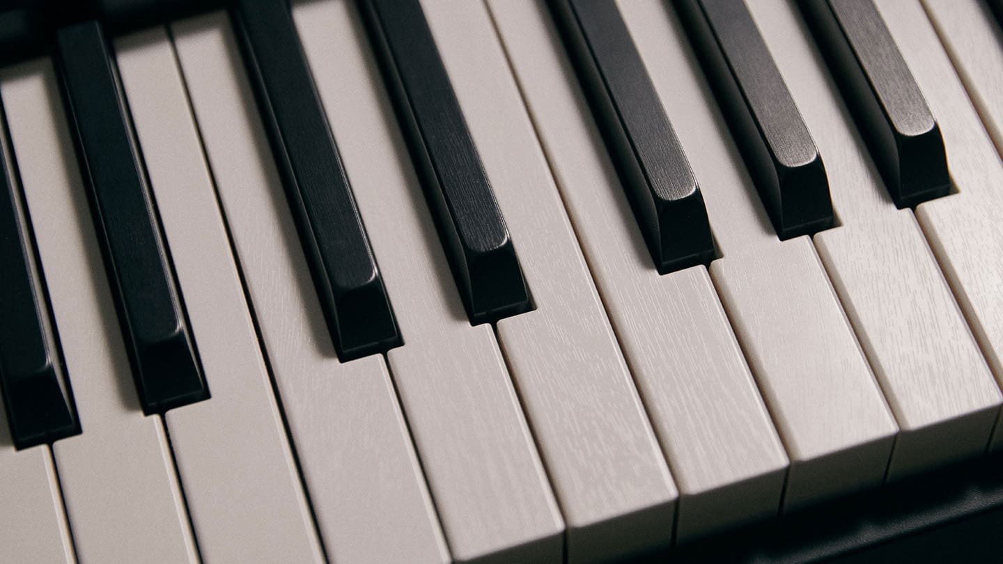 此外,白键的材质与三角钢琴相同,也是由树脂和高品质天然木材混合制成。结合压纹键盘处理,白键更具象牙的色泽和质感,黑键则更具乌木的外观和纹理。这款键盘能大幅提升弹奏效果,同时再现了三角钢琴的自然触感,并增添了奢华的时尚外观。