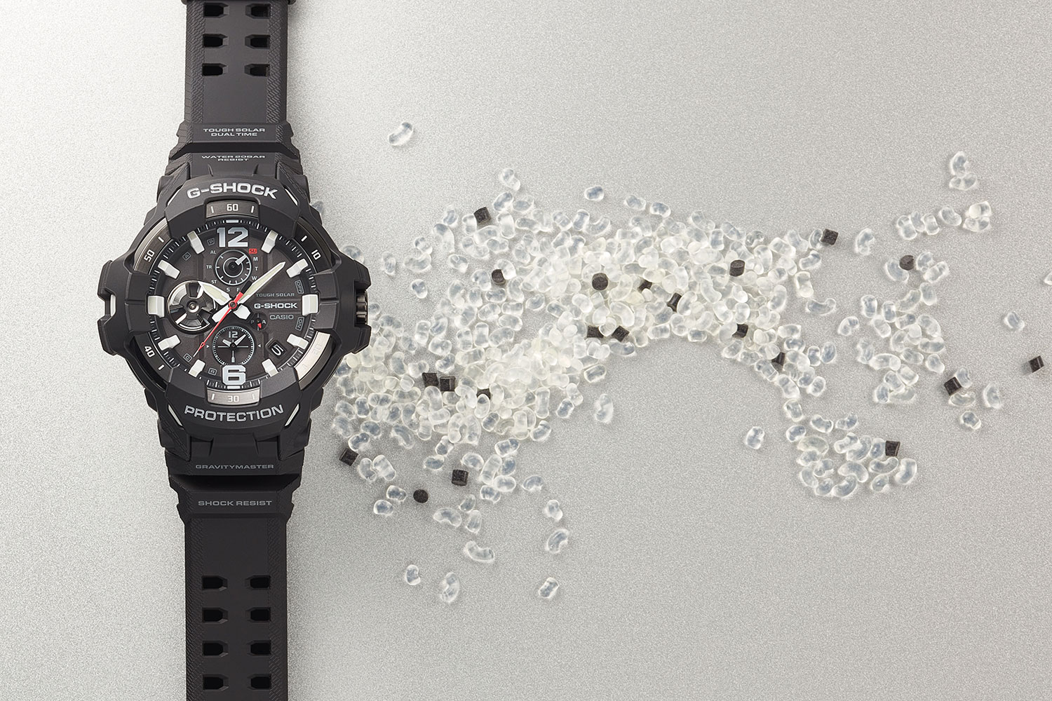 GR-B300采用了G-SHOCK近年来经常使用的生物质塑料。顶部表圈盖、表带以及兼具设计和缓冲功能的环状彩色部件均使用了这种材料,中央表壳则是由碳纤维增强树脂和生物质塑料制成的特殊材料。此外,表带末端延伸至表壳下方,实现了表壳与表带的无缝设计。表壳和表带的固定部位通过两侧螺钉固定,经过位置微调后,佩戴感和外观都达到了理想的平衡。GR-B300还配备了高亮度LED灯的照明功能,即使在夜间的驾驶舱等黑暗环境中也能确保良好的可视性。