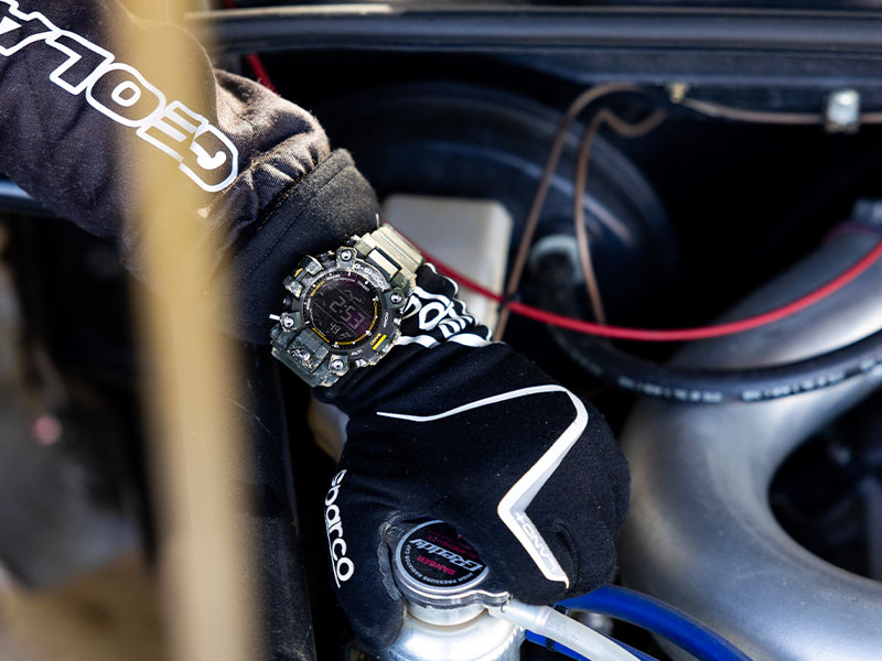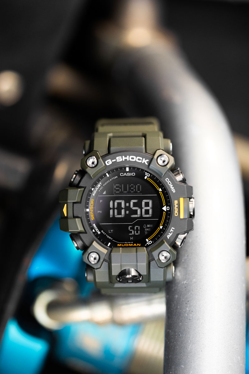 回望1995年,MUDMAN“泥人“的诞生揭开了一个新篇章。结合G-SHOCK标志性的耐冲击特质,考虑到沙漠这一极端环境,MUDMAN“泥人“采用了全覆盖的大型按钮和树脂材料,成就了“MASTER OF G“ 陆地系列中独树一帜的高防尘防泥性能。它的坚不可摧,在拉力赛场上备受珍视,尤其是2006年推出的G-9000,在世界上最严酷的巴黎-达喀尔拉力赛中历经磨砺。继2011年的GW-9300后,MUDMAN再次焕发新生,同属于陆地系列的”大泥王“也不断推陈出新,在功能和性能上突破自我。2021年推出的GWG-2000,继承了经典的防尘防泥特性,同时融入了革命性的锻造碳纤维表圈和碳纤维核心护卫结构,引领了手表向更加小型化、轻量化的新时代。G-SHOCK近年虽专注于指针与数字的融合展现,Casio却不忘G-SHOCK的数字显示根源,正是这种坚持,催生了时隔12年的新 “泥人“。