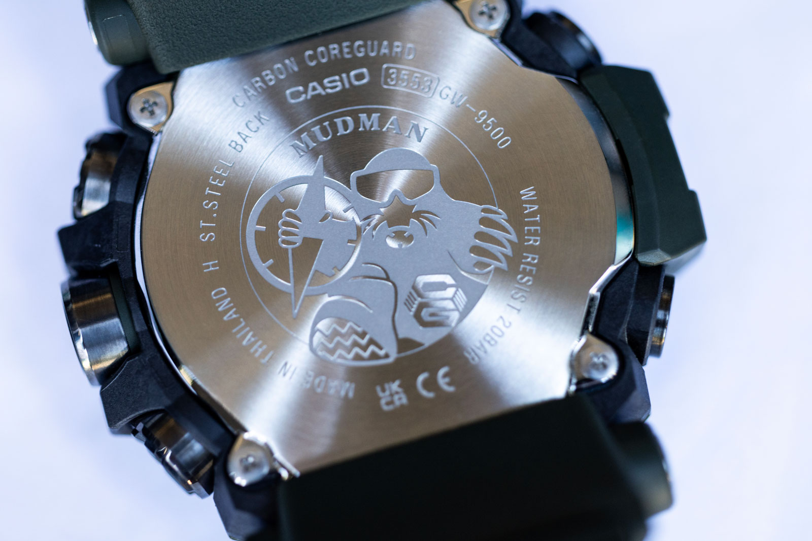 作为倡导与自然共生的MASTER OF G系列的一部分,新款MUDMAN在表壳、表圈和表带的选择上同样彰显了这一理念,采用了可再生有机资源制造的生物树脂,这是对新款MUDMAN极为贴切的一次更新。此外,表背上那只握着指南针的鼹鼠插画也值得一提。这一独特的视觉设计仿佛鼹鼠正从大型显示屏中走出,巧妙地与新MUDMAN的技术进步相联系。再加上用于提升暗处可见性的超级照明器,这些细节都极大地增强了这款手表的实用性和吸引力。