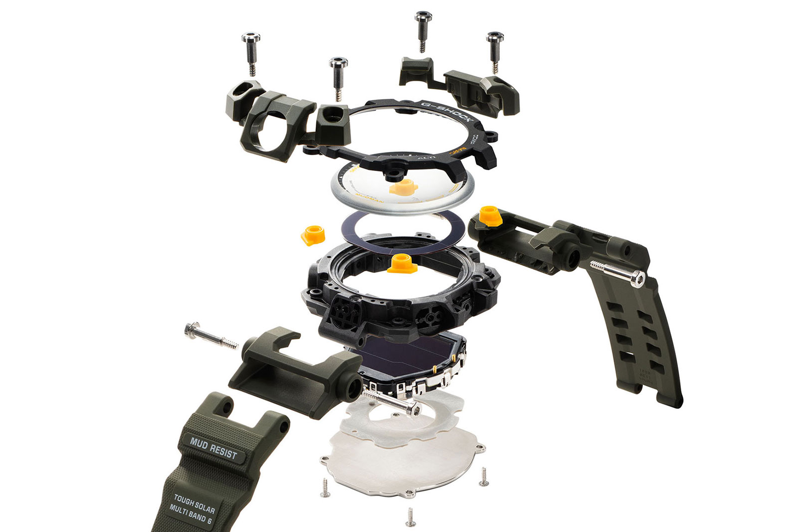在追求本体薄型化的同时,Casio并未放弃G-SHOCK特有的复杂且粗犷的造型。为了在薄型设计和保持体积感之间找到完美平衡,GW-9500采用了将多个部件组合在薄型本体中,以创造出立体感的独特设计方法。这样,就打造出了具有G-SHOCK风格的坚固设计,使这款新作品在MASTER OF G系列中,即使在极端恶劣的环境下佩戴,也展现出了非凡的坚韧印象。近年来,Casio不仅在MUDMAN上实现了技术革新和小型化,同时也始终坚持着追求坚固耐用设计的精神。这种坚持不懈的态度,展现了品牌对于钟爱G-SHOCK外观的用户的诚意和对品牌核心价值的忠诚。