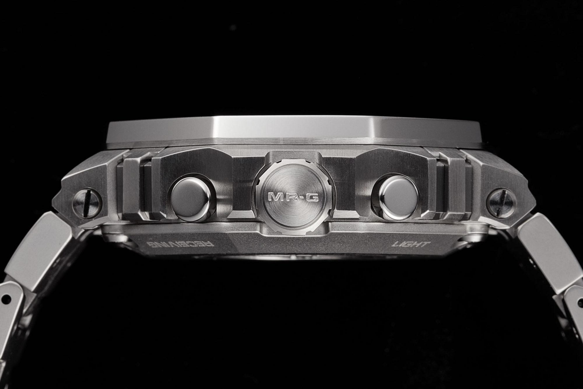 延续MR-G系列一贯的高端定位,这款 MRG-B2100 同样展现了精湛的工艺细节。与 MRG-B5000 强调 Cobarion 材料特性的全镜面抛光设计不同,指针显示的MRG-B2100为了能够适配更广泛的佩戴场景,对表圈和表壳的顶面进行了发丝纹处理。侧面和斜面通过抛光成镜面感,打造出既兼具实用性又富有奢华气息的腕表作品。