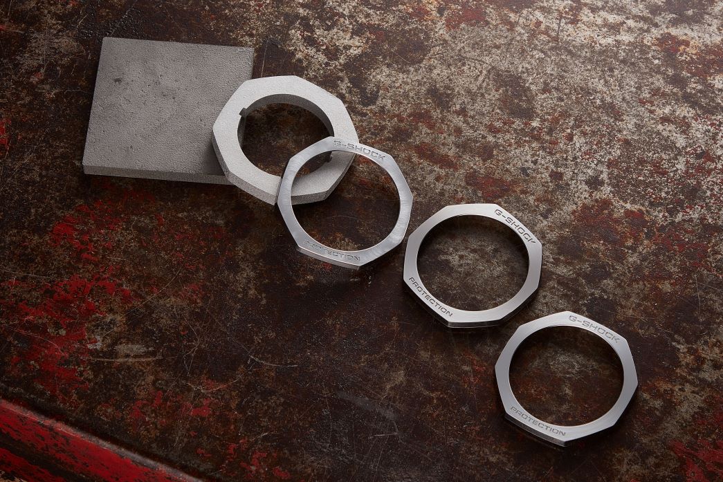 另外,COBARION以板材的形式交付给卡西欧,然后加工成表圈的形状,这个过程难度也很高。与常见的不锈钢或钛合金不同,Cobarion 的高硬度使其无法通过传统的冲压方式成型。也就是说,除了从板材状态开始通过线切割和切削来形成形状之外,别无他法,这不仅耗时,还对工艺精度要求非常高。最终成型的MRG-B2100D的表圈还进行了碳化钛涂层处理,除了强化硬度外,还提高了其耐磨性。
