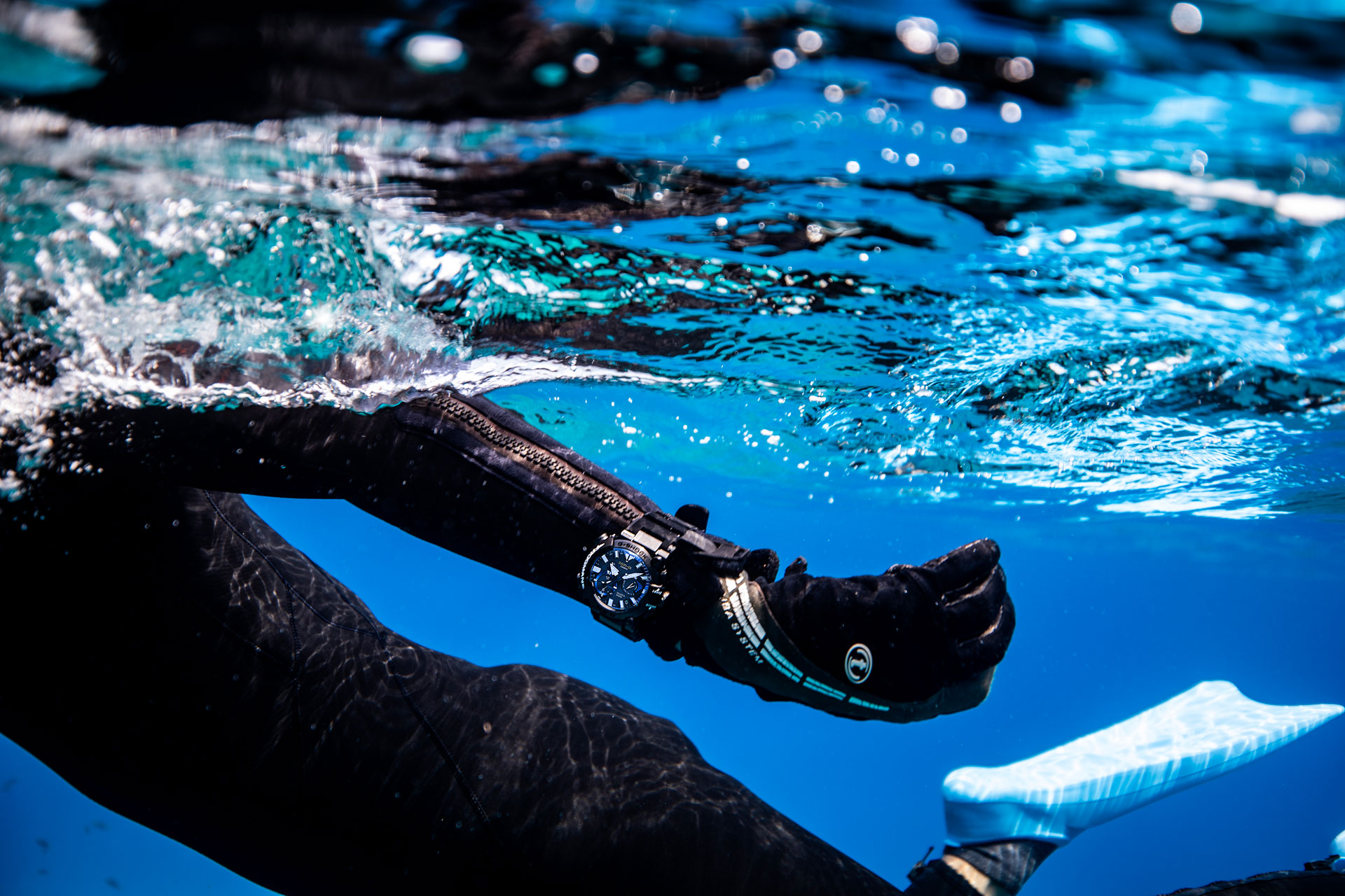 与表头搭配的表带采用了柔软且触感良好的氟橡胶材料,与一般尼龙相比更加柔软。通过在不同部位使用不同硬度的材料,实现了贴合手腕、舒适自然的佩戴感。这种坚固可靠的特性以及戴在手腕上时的安心感,都是在恶劣环境中工作的潜水员所喜欢的要素。