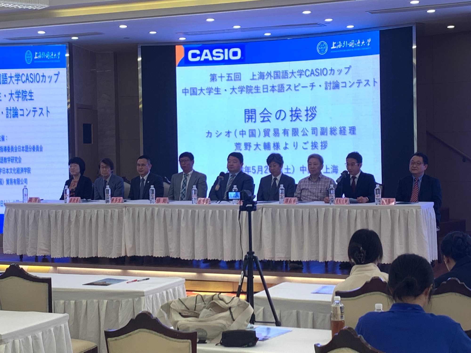 2023年5月20日,由教育部高校外语专业教学指导委员会日语分委员会、中国日语教学研究会、上海外国语大学日本文化经济学院和卡西欧(中国)贸易有限公司联合主办的第十五届“卡西欧杯” 中国日语专业本科生•研究生演讲辩论大赛在上海外国语大学隆重举行。