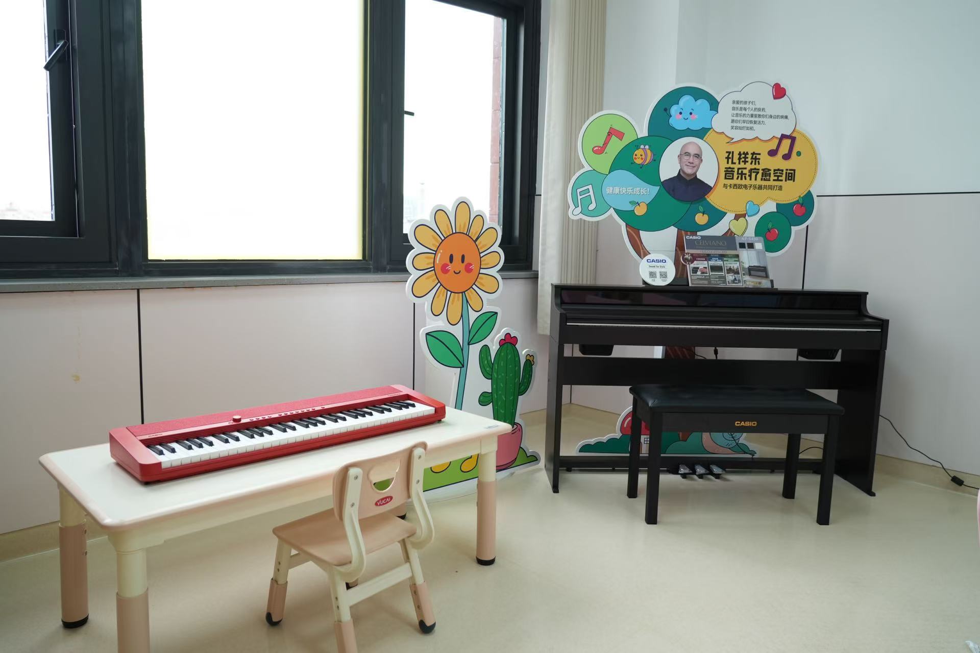 孔祥东携手卡西欧(中国)贸易有限公司(以下简称“卡西欧”),通过 上海市志愿服务公益基金会 向 复旦大学附属儿科医院 捐赠3台电钢琴(AP-S450)、5台电子琴(CT-S1、CT-S200),打造孔祥东音乐疗愈空间。这些乐器将用于医院的音乐治疗项目和住院患儿家庭的人文关怀活动。