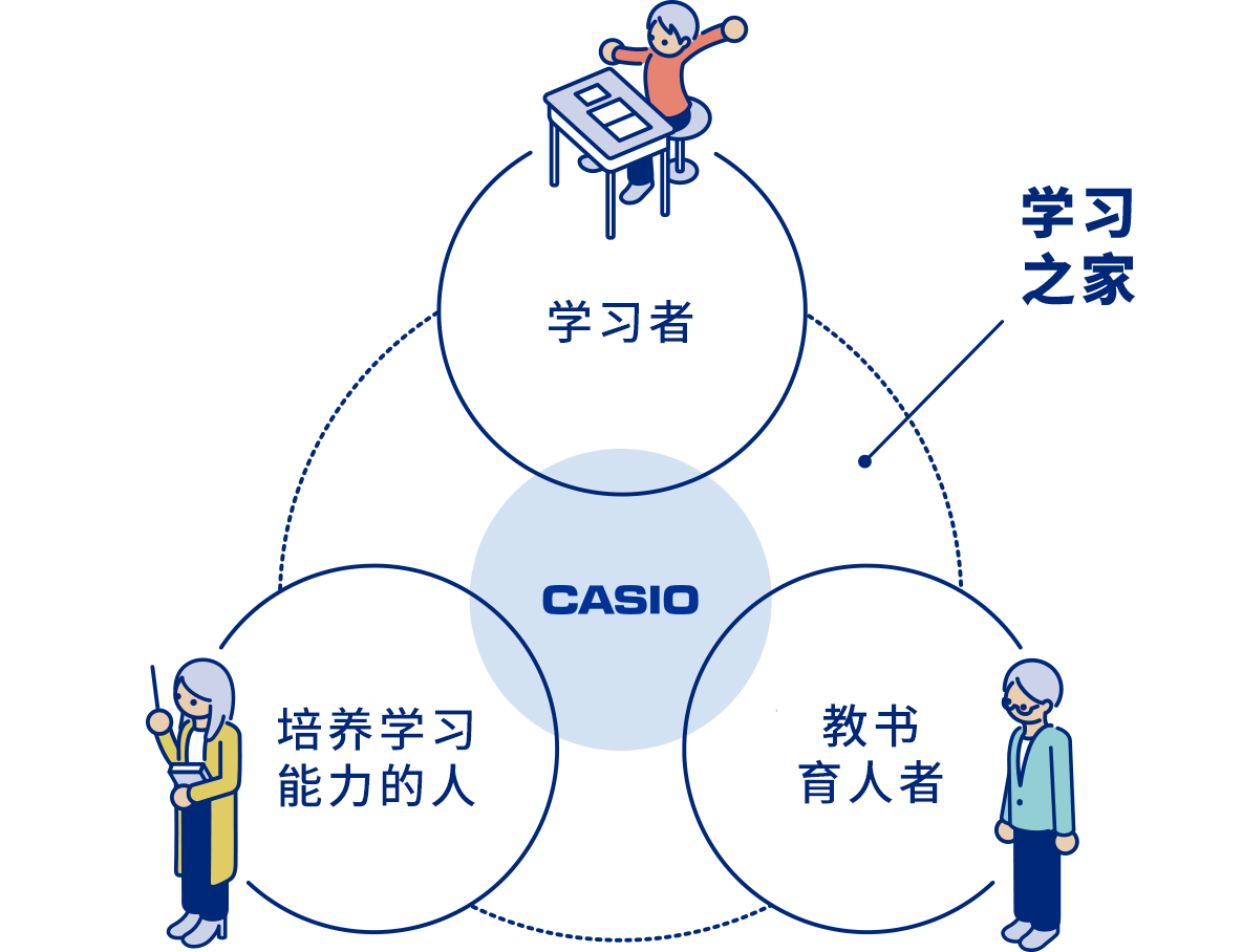CASIO 将我们与参与教育的人之间的关系定义为“学习之家”。