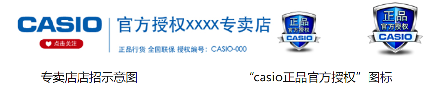 2、以下“casio正品官方授权”图标,会出现在卡西欧授权专卖店。