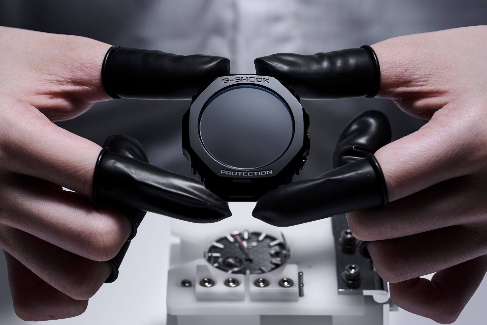 此外,G-SHOCK 手表还采用了一系列其他必要技术,包括利用精确到纳米(十亿分之一米)的超精密切割工艺的特殊卡西欧山形工厂成型技术,以及用于制造金属表面的喷溅技术。