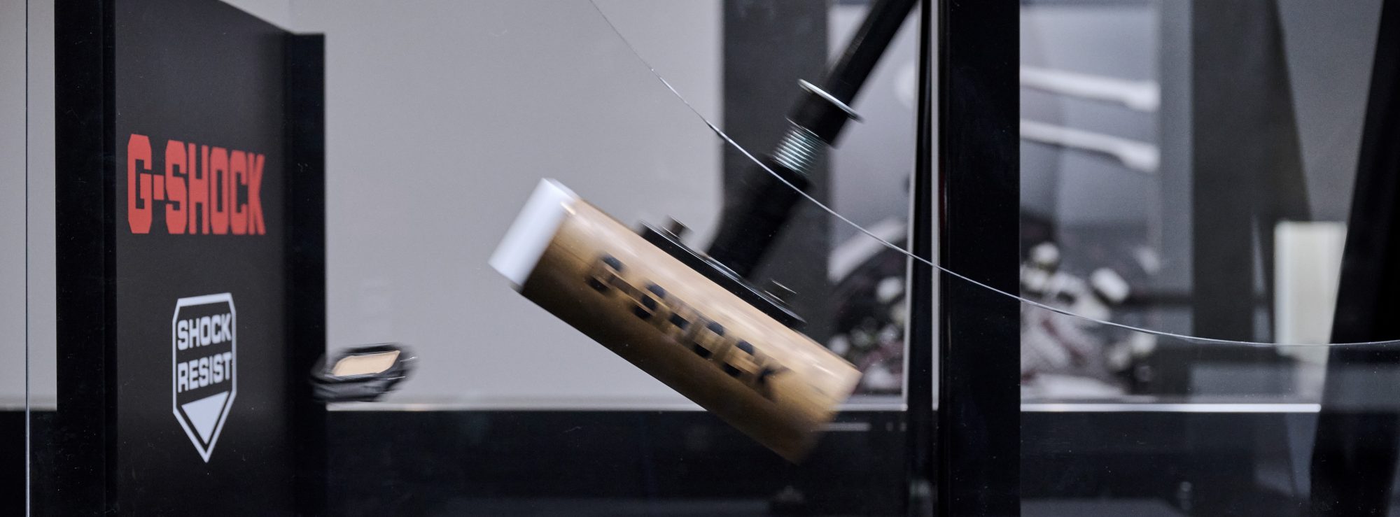 在展示厅里,不仅可以看到卡西欧致力于生物质树脂和塑料材料的回收、手表包装盒的纸质化等绿色行动和历代制造的手表型号展示,最引人注目的还是能看到G-SHOCK耐久性能的演示。