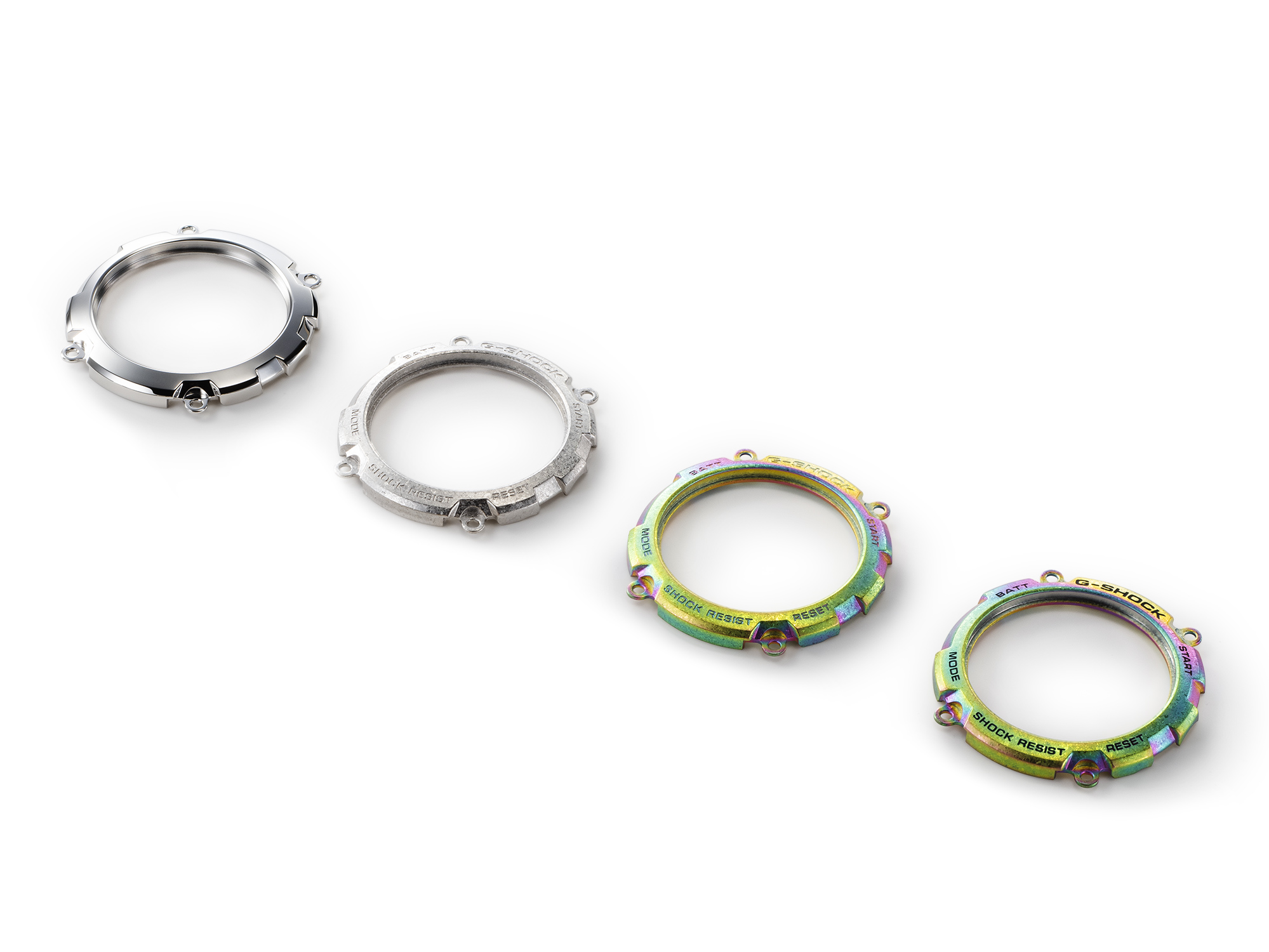 表圈经过重结晶处理和深层硬化,然后融入虹彩离子镀涂层