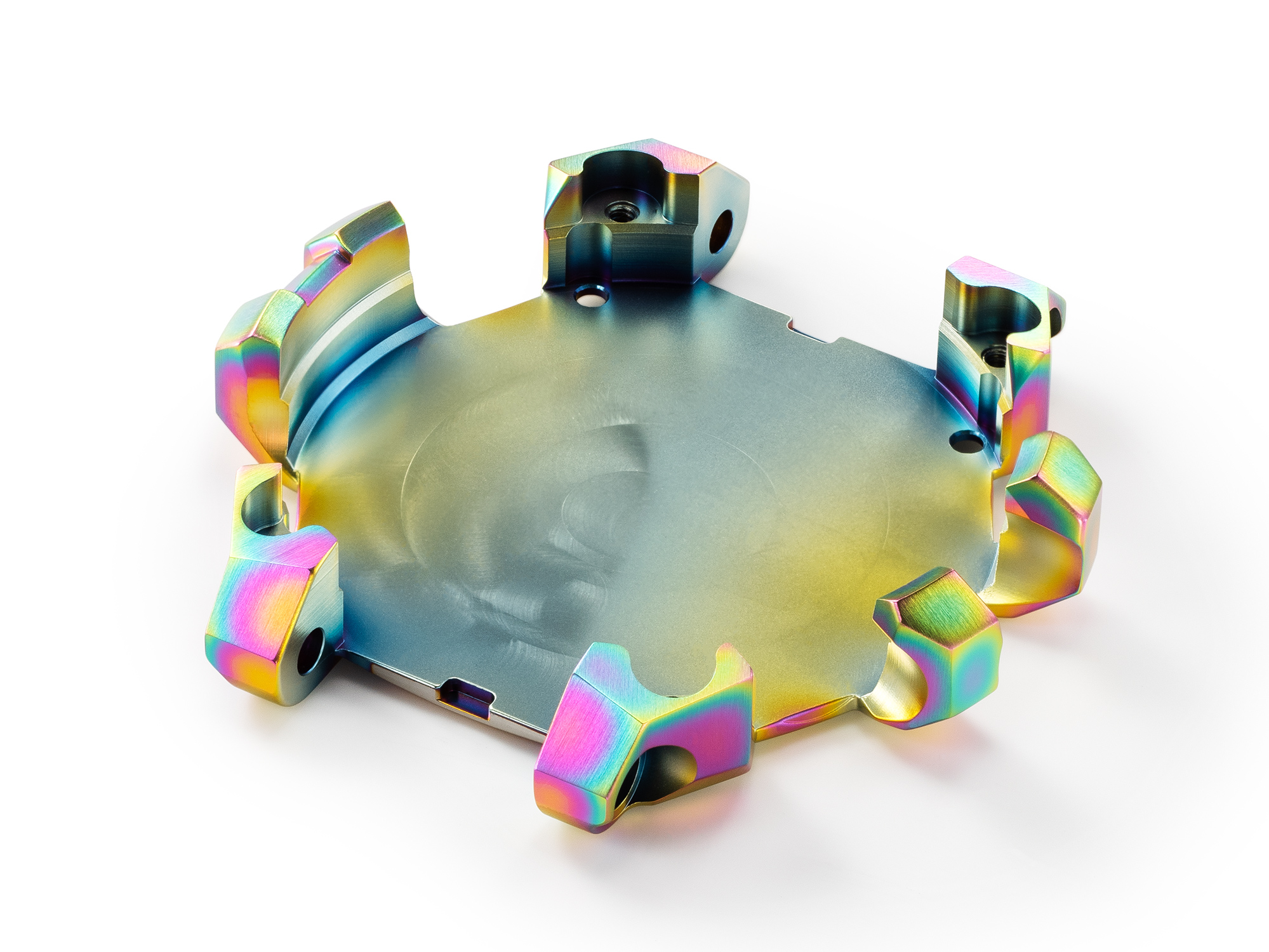 造型华丽的底盖:虹彩离子镀 + 再抛光饰面